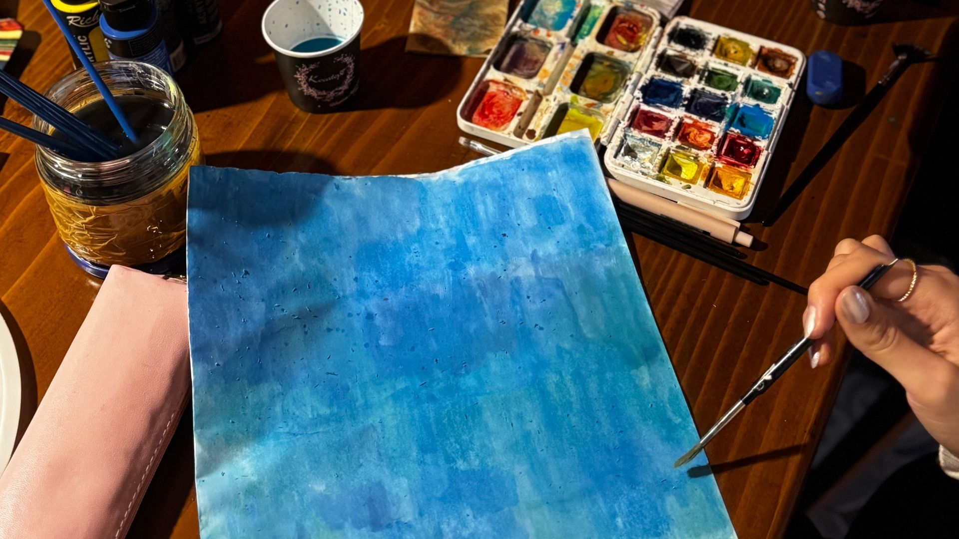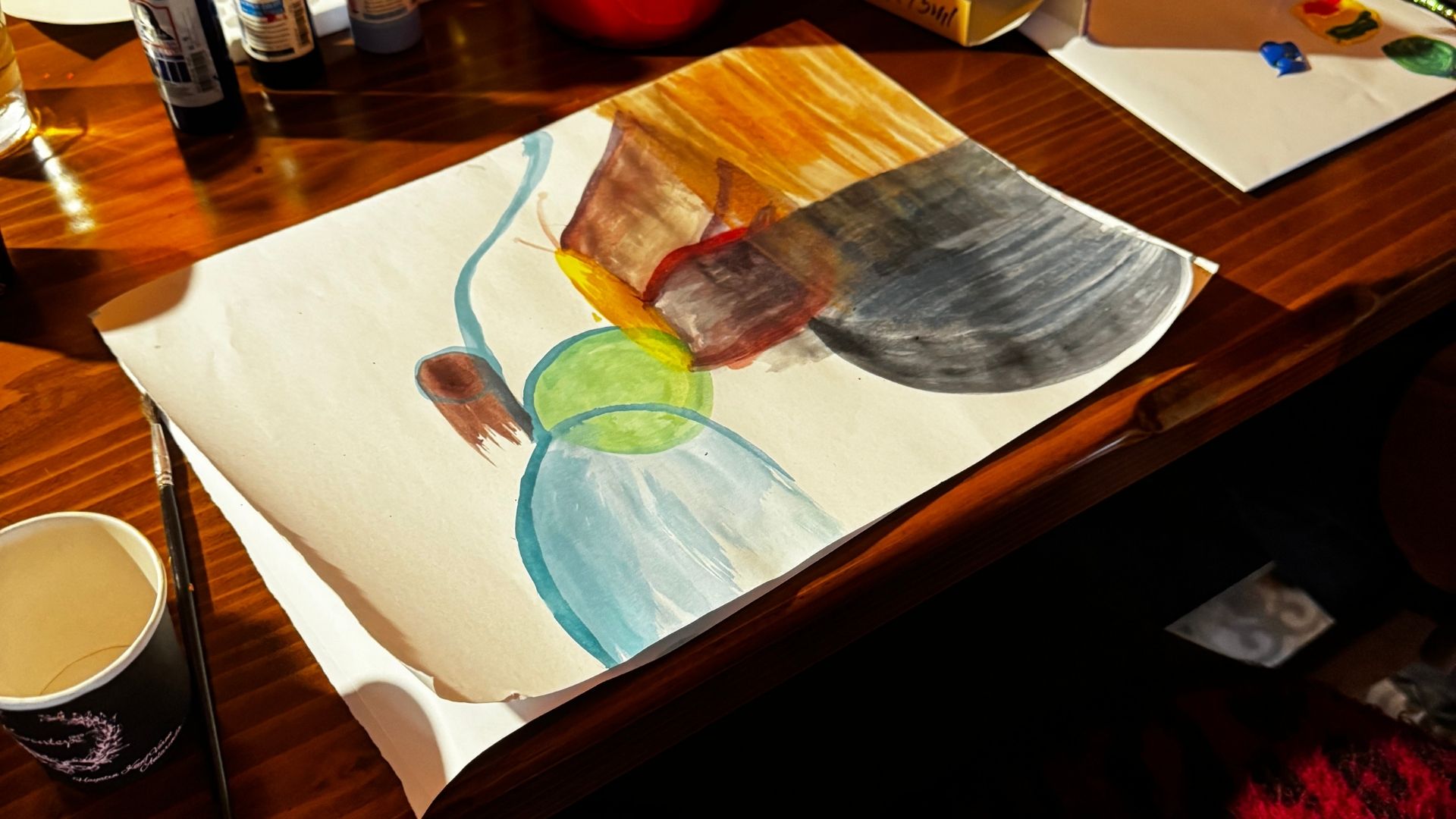 Ardından her katılımcı kendi kişisel renk paletini geliştirerek seçtiği bir duyguyu — yalnızca renk, biçim ve doku kullanarak — soyut bir resme dönüştürdü. Çalışmalar, bireysel ifade alanlarını korurken aynı zamanda ortak bir üretim atmosferi yarattı.