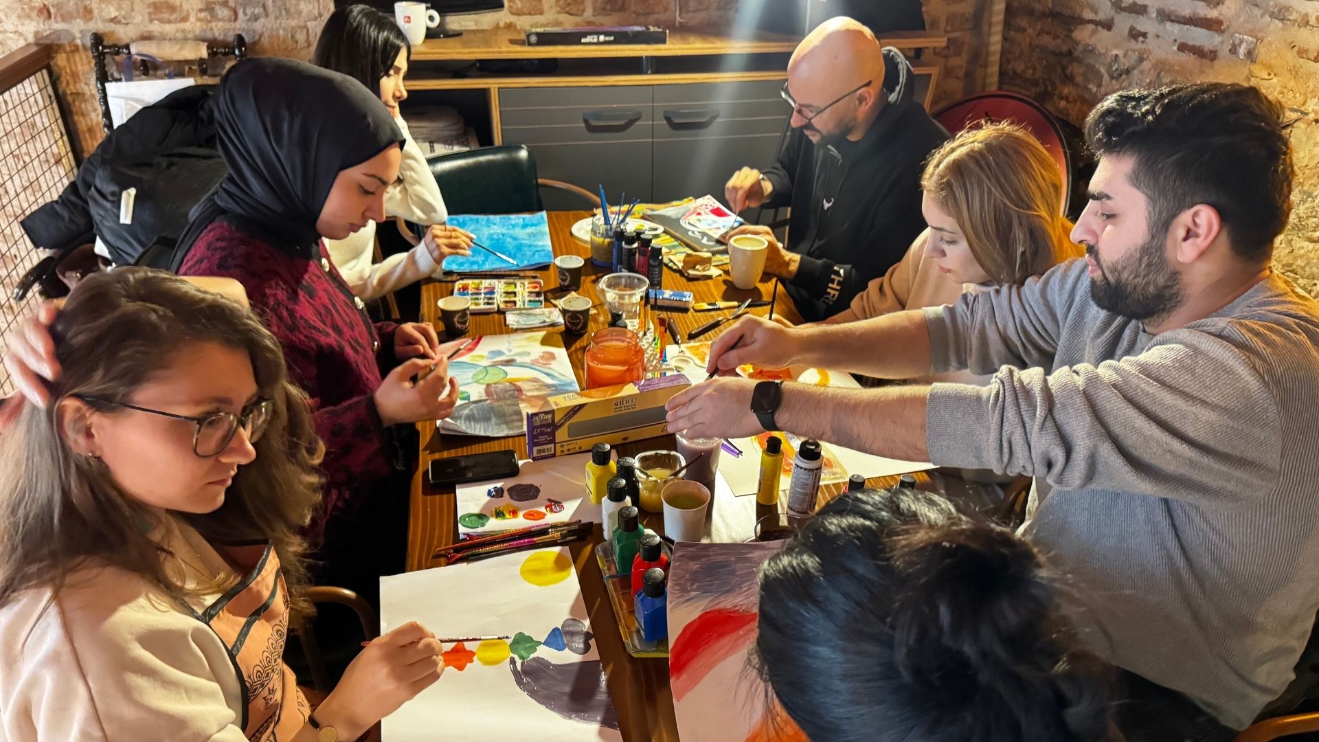 Atölyenin sonunda gerçekleştirilen paylaşım bölümünde, katılımcılar çalışmalarını grup içinde sundu. Renk seçimleri, kompozisyonlar ve duygu–renk ilişkileri üzerine yapılan yorumlar; üretim sürecini kolektif bir öğrenme ve karşılaşma alanına dönüştürdü.